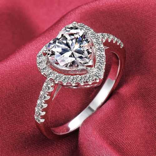 Diamond Factory 18K Solid Gold Heart-Cut Halo Diamond Ring