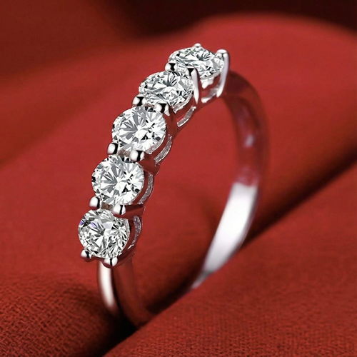Diamond Factory 18K Solid Gold Five-Stone Round Brilliant Diamond Ring